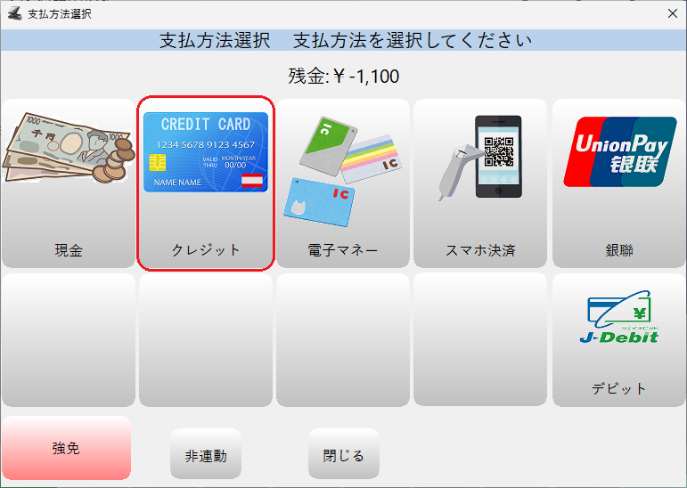 ※(決済連動なし)現金以外の場合は小計画面「クレジット」ボタンを押してください。