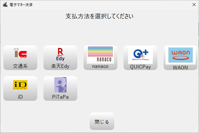 小計画面右下の「支払方法選択」を押して支払方法選択画面を表示します。