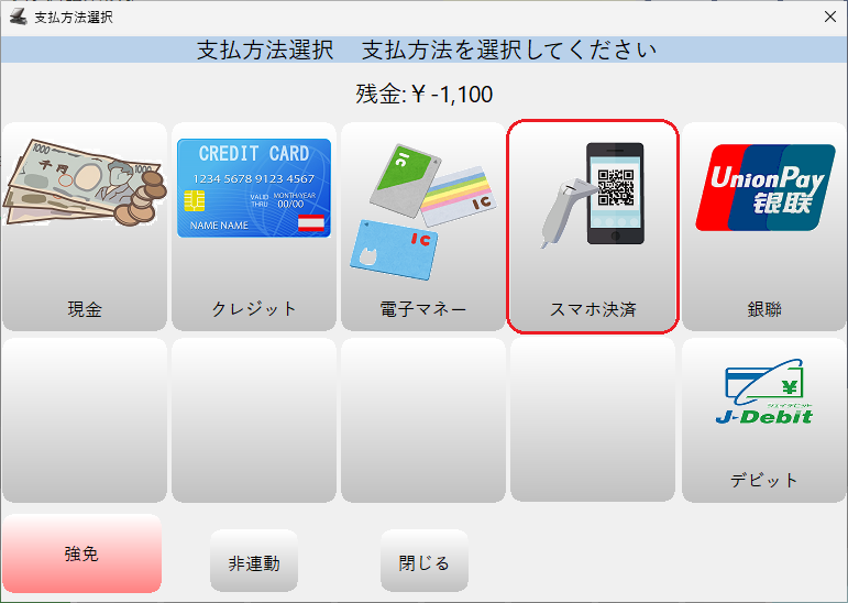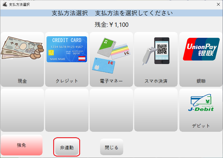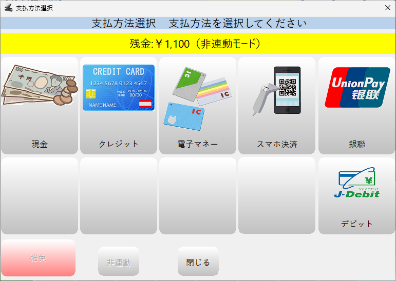 支払方法選択画面が「非連動モード」になります。