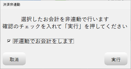 確認画面が表示されるので「非連動でお会計をします」のチェックを入れて「実行」ボタンを押してください。
