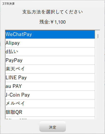 処理したいQR決済ブランドを選択して「決定」ボタンを押します。