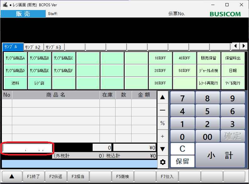 赤枠に画面テンキーやキーボードから直接入力しても呼び出し可能です。