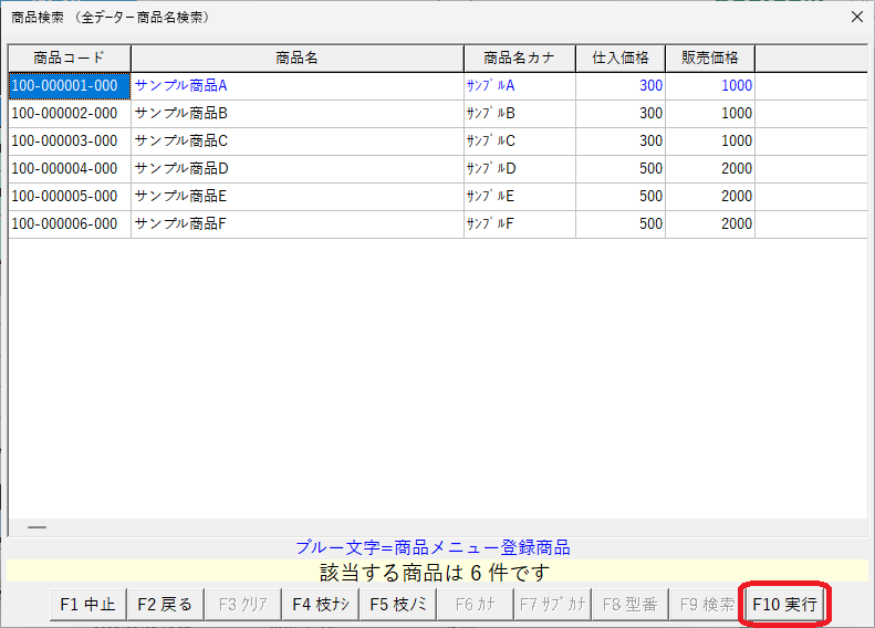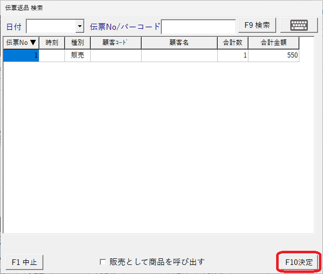 選択したら「F10実行」を押してレジ画面に呼び出します。