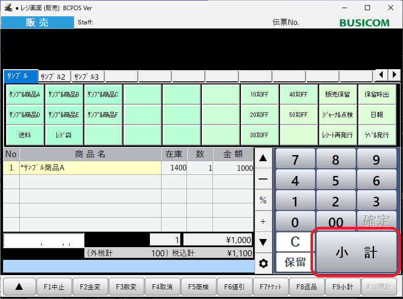 商品を呼び出ししたら「小計」ボタンを押します。