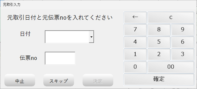 実際に商品を返品する際は販売日と伝票番号を入力し、「決定」を押して進めてください。
