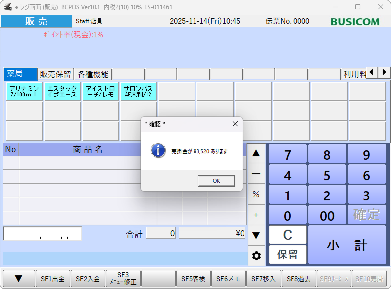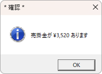 ③-「売掛金が¥〇,〇〇〇あります」と表示が出ますので、確認して「OK」を押します。