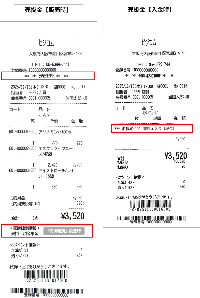 BCPOSにおいては、売掛の登録・入金のみに売掛機能を使用することができます。