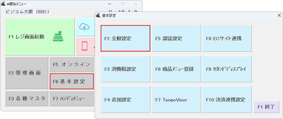 ①-開始メニュー > 「F6 基本設定」を選択します。