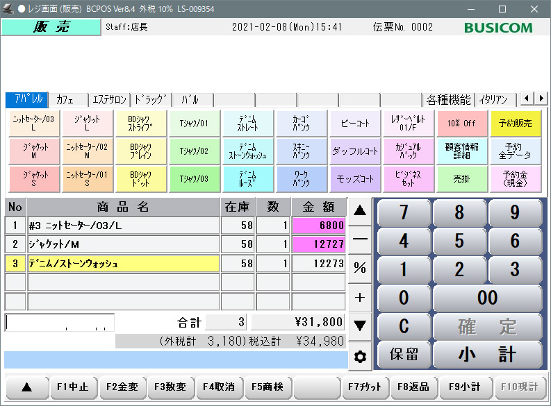 設定された販売価格が呼び出されるので、通常通り販売操作を行ってください。