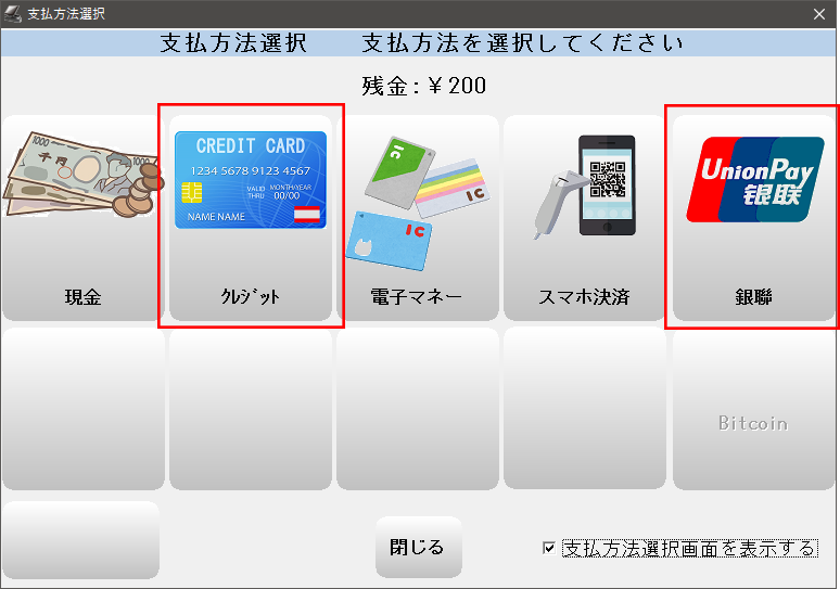 「支払方法選択画面」で「クレジット」または「銀聯」を選択します。