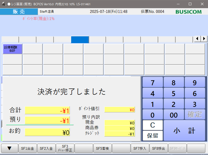 ⑤-レシートが発行され、レジ側画面で「決済が完了しました」と表示されたら終了です。