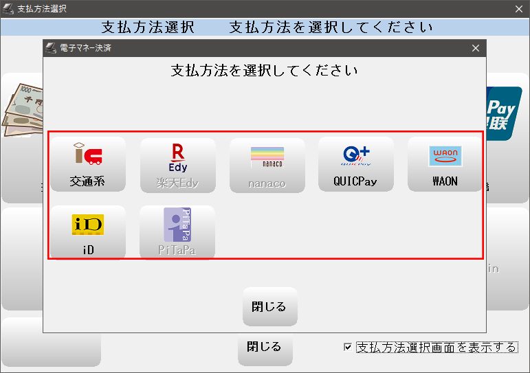 ⑤-支払方法選択画面で「電子マネー」を押します。