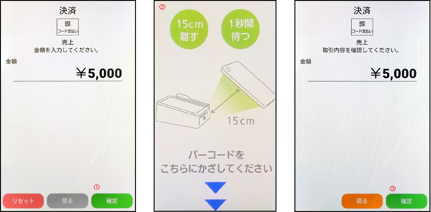 ②-お客様側の端末(JT-VC10)のカメラにスマホのバーコードをかざします。