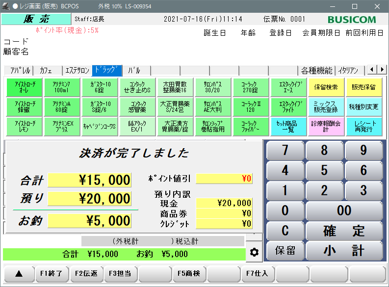以上で免税販売操作終了です。