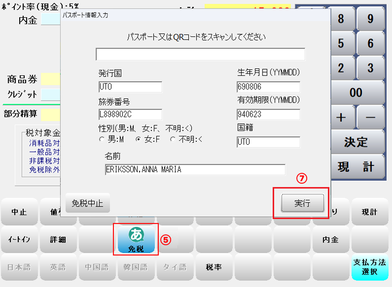 ⑤-「免税」を押します。