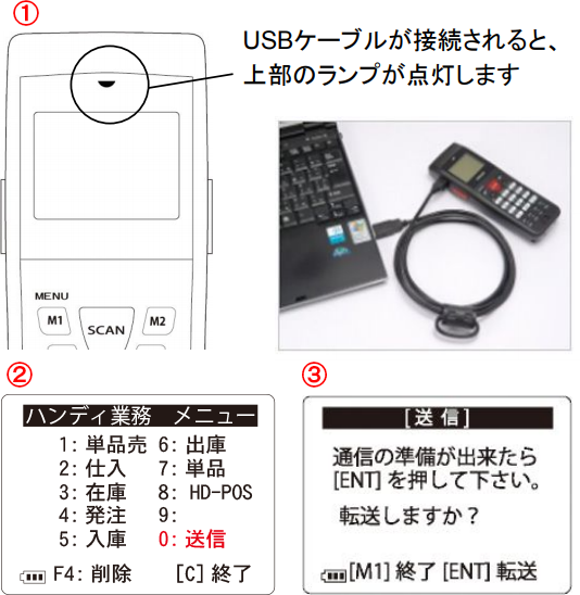 ①-ハンディをBCPOSに接続します。