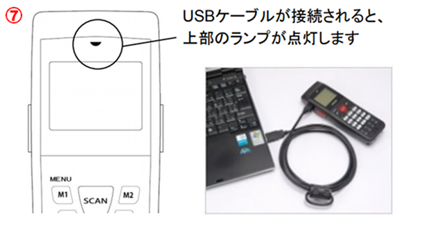 ⑦-ハンディターミナルとPOSをUSBケーブルで接続します。
