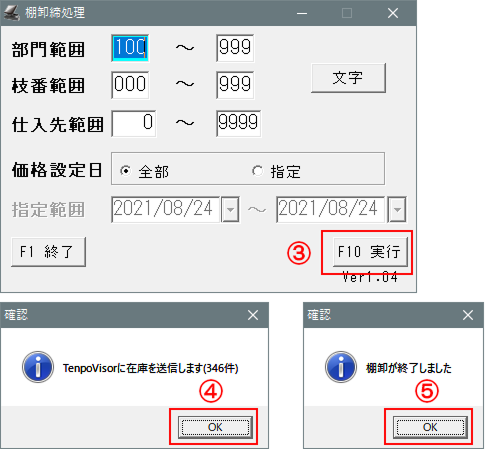 ②-「棚卸締処理」を押します。