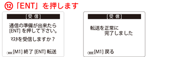 ※送信処理は、30秒間開いています。30秒の間に次項⑫の「ENT」を押す操作をして「商品マスタ受信」を行ってください。