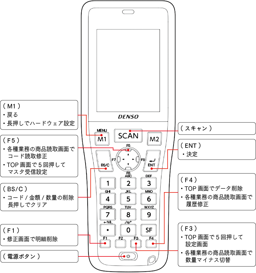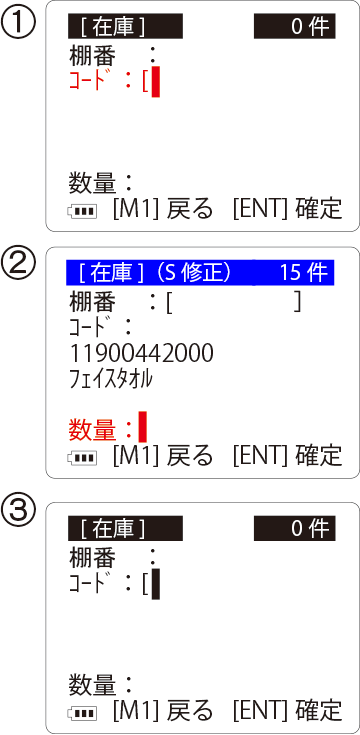 ③-上記②で削除した場合は自動的に読み取り画面に戻ります。数量変更を行った場合は「M1」を押して戻ります。