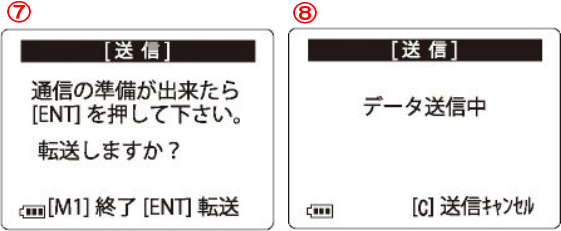 ⑧-「データ送信中」と表示され転送が始まります。