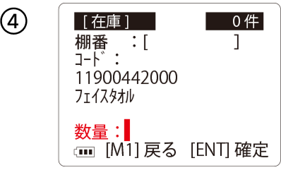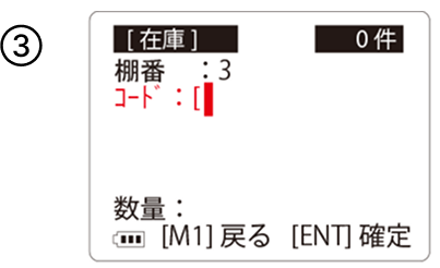 ②-棚番を使用する場合は「数」を入れて「ENT」を押します。(棚番は変更しない限り、同じ棚番になります「M1」を押す事で変更できます)