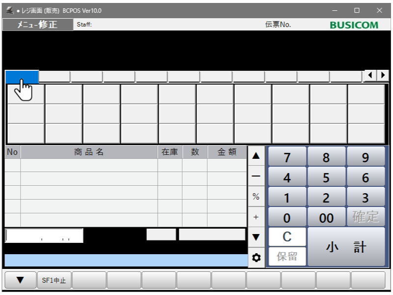 レジ画面上部が「メニュー修正」に変わったことを確認してください。