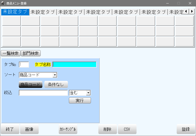 ※「部門販売登録」用のメニューボタン作成は下記を参照してください。