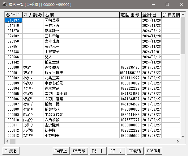 顧客マスタに登録されている顧客を一覧にして呼び出します。