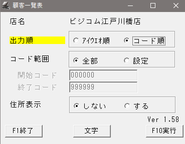 顧客マスタで登録された顧客に対して、範囲指定した顧客のリストが表示されます。
