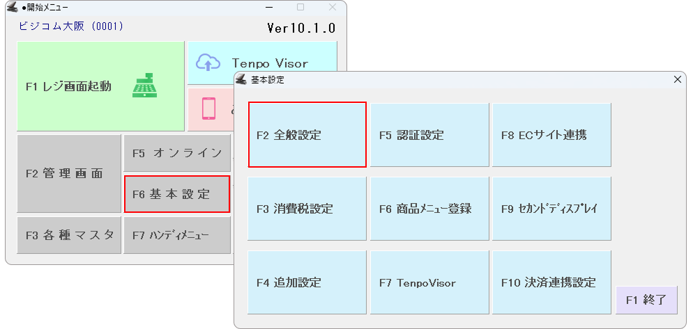 ②-「F2 全般設定」を押します。