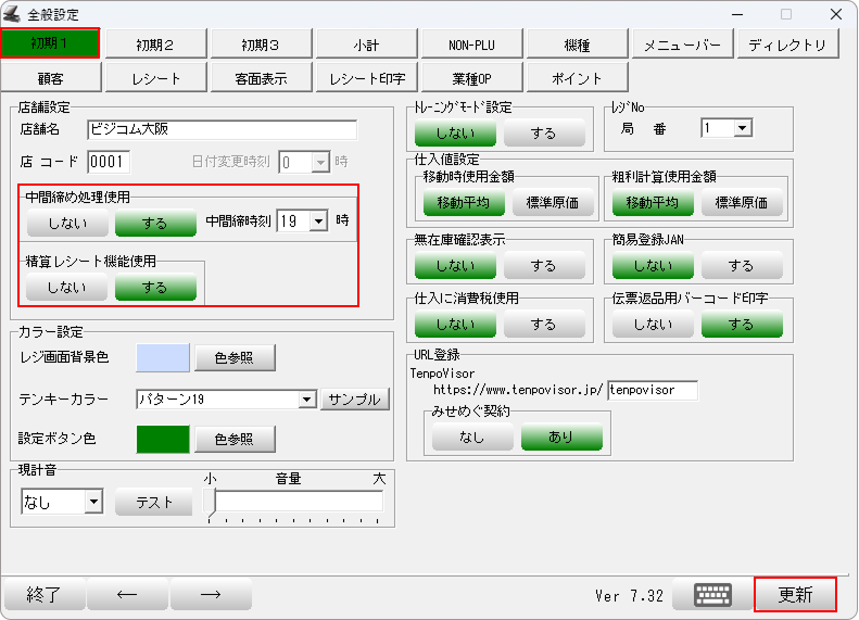 中間締め時刻は、日付が切り替わる前(0時より前)に設定してください。設定された時刻で中間締めを行うと、精算レシートを発行することができます。
