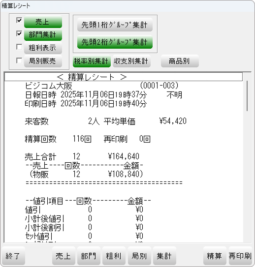(精算レシート出力後は翌日7/8の売上として計上。)