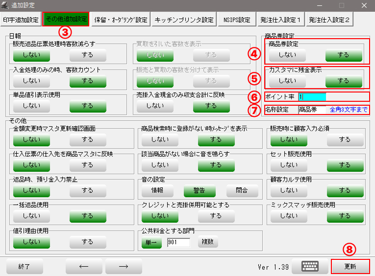 ⑦-「名前設定」:商品券と記載されている全ての名称を変更可能