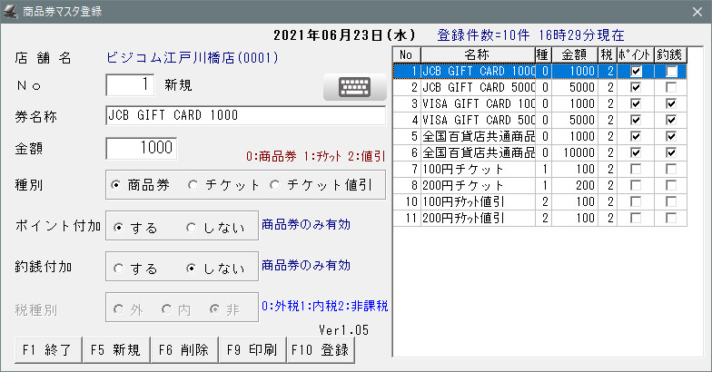 JCBギフトカードやVisaギフトカード等の商品券を取扱う場合や、お店独自の値引チケットの発行等を行う場合の設定となります。
