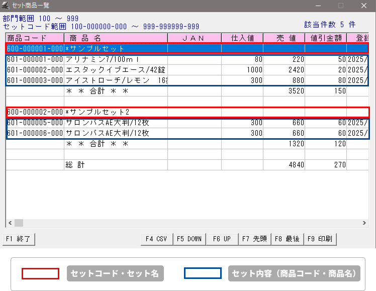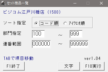 セットマスタに登録されている商品のセットを一覧にして呼び出します。