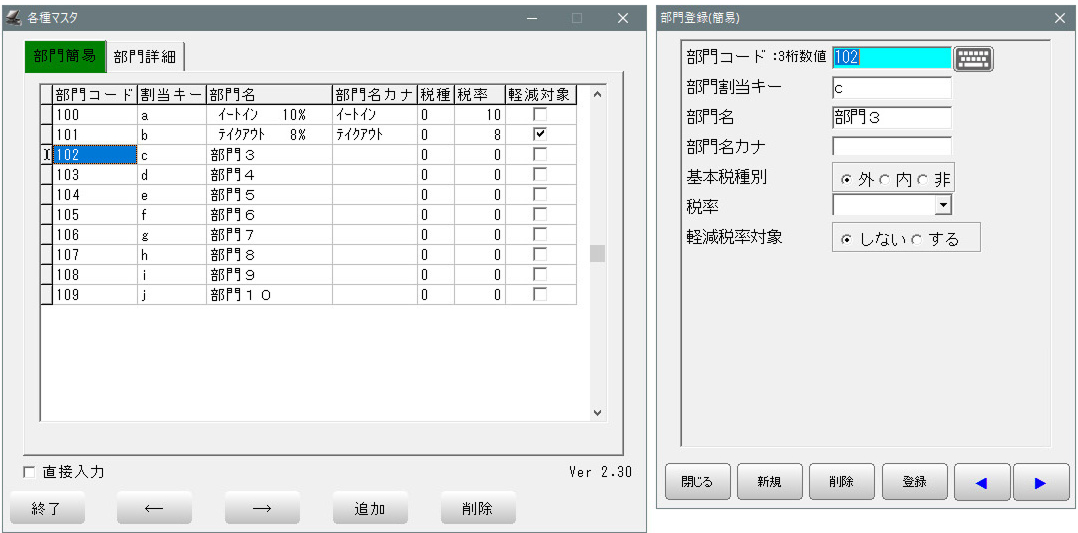 BCPOSでは、商品コードの先頭3桁を使って部門を設定します。