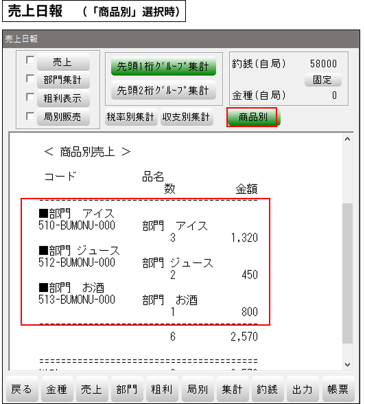 ※単品販売(PLU)時は、単品を日報集計するグループ名となります。