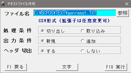 部門登録(詳細)画面の下部にある「テキスト」ボタンを押すことで、部門マスタの内容をテキスト形式で保存したり、テキストファイルから取り込むことができます。