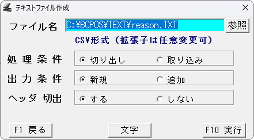 値引理由マスタ画面の下部にある「テキスト」ボタンを押すことで、値引理由マスタの内容をテキスト形式で保存したり、テキストファイルから取り込むことができます。