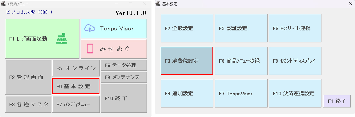 | 印字金額 | 「F6 基本設定>「F3 消費税設定」>「税設定」で設定した「税」を設定。 |