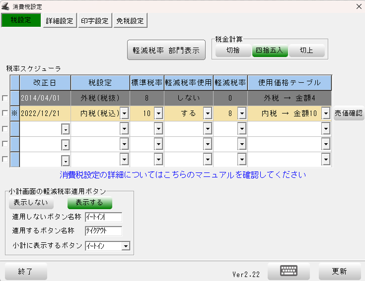 | 税率スケジューラー | 次回法改正時に、設定した日付のタイミングで設定税率を適用します。 |