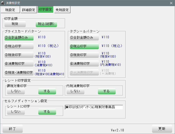 | プライスカードパターン | レシートプリンターの運用ですが、外税しかないので使用しないでください。 |