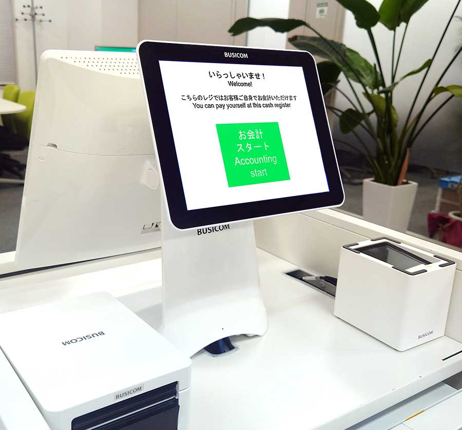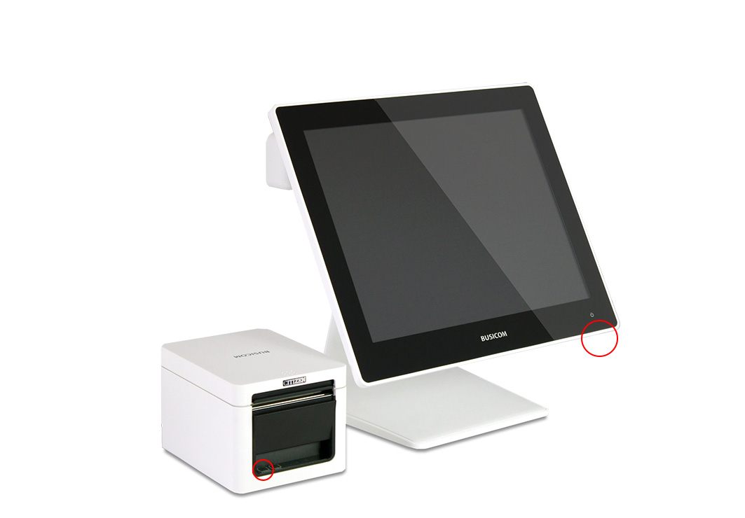 ②-レシートプリンターの電源スイッチ、Seav-15aの電源スイッチ(ディスプレイ下部)の順に電源をONにします。