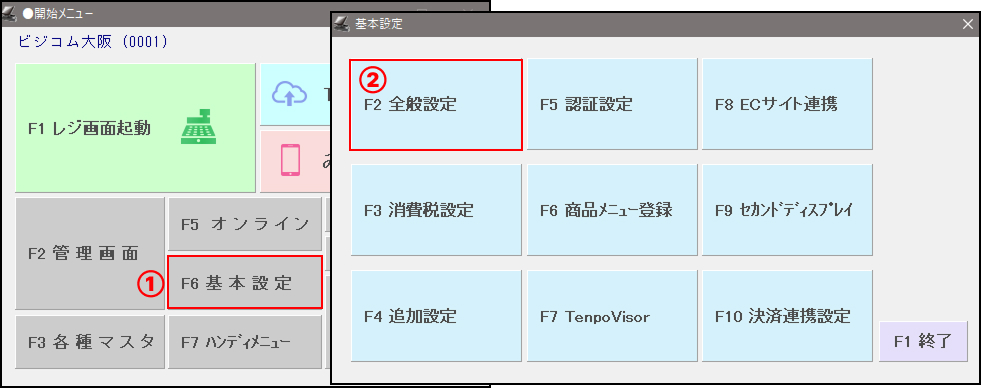 「開始メニュー 」>「F6基本設定」>「F2 全般設定」>「額面表示」タグを開きます。