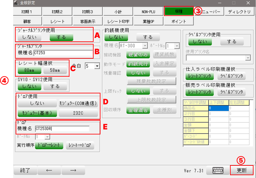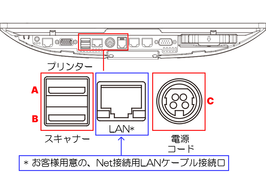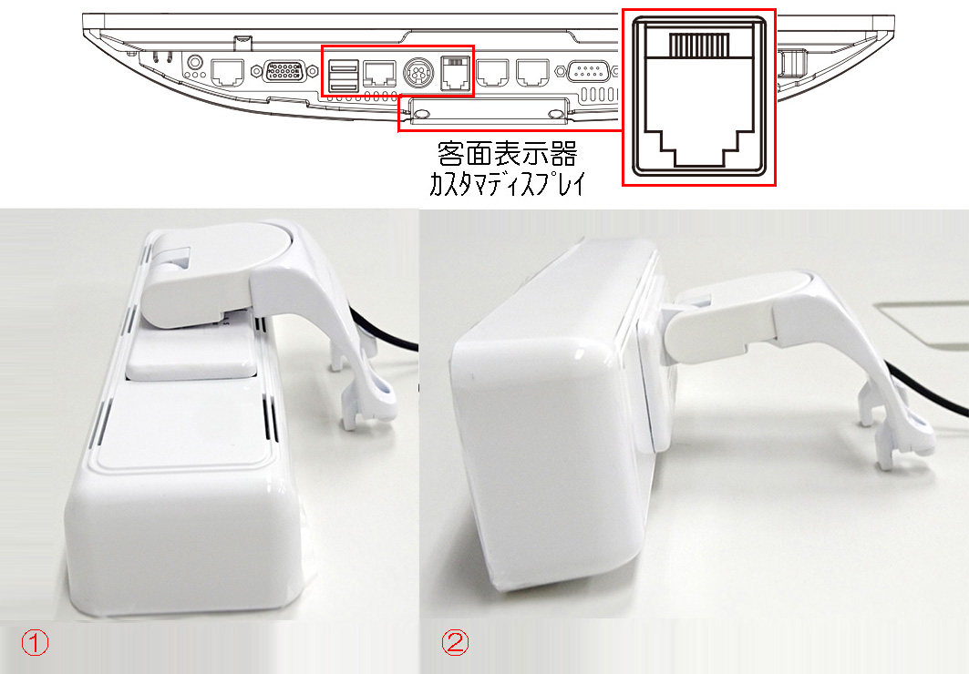 ③-キャッシュドロアのケーブルはプリンターに接続します。