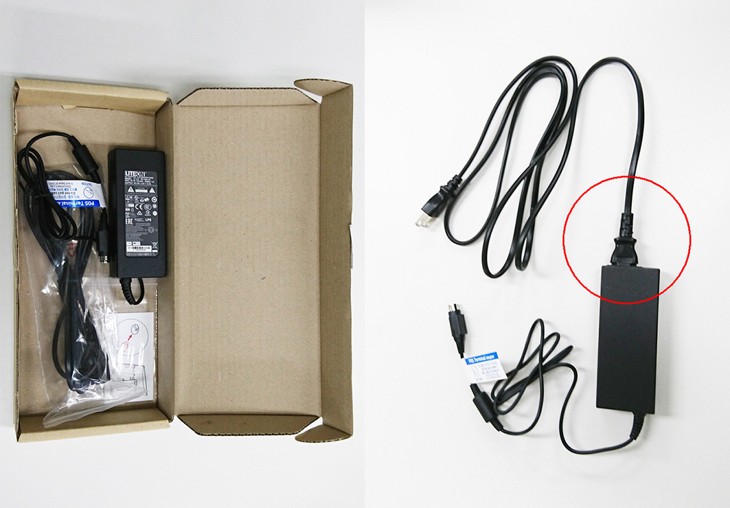 ①-同封されている小パッケージ内の、ACアダプター/電源ケーブルを取出します。
