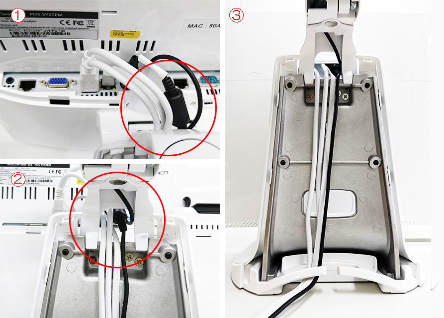 ①-10インチタッチパネルモニターを出し付属のケーブルを、本体背面のケーブルと接続します。