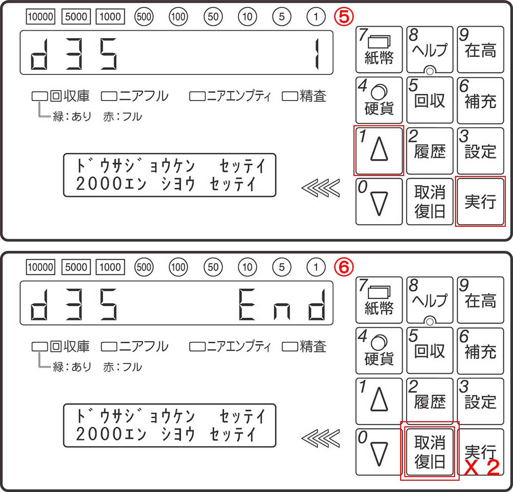 5-「1」「実行」の順に押します 6-「取消し復旧」を2回押します