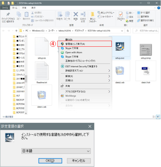 4-開いたフォルダ内の「OPOSSetup.bat - ショートカット」を右クリック「管理者で実行」を押します 5-言語選択は「日本語」で「OK」を押します